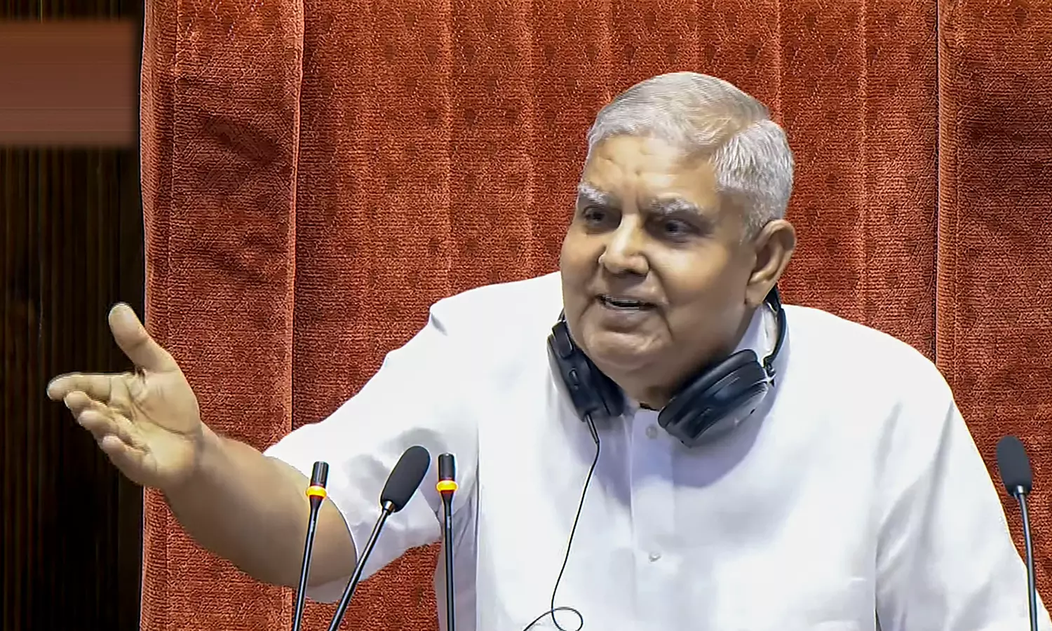 In the House, Dhankhar expressed that he had "no personal issue with any member" but was "hurt by the intemperate language used." As the Opposition walked out amid sloganeering, Dhankhar criticised Kharge and the Opposition for "disrespecting democracy and the Constitution" and attempting to "destabilise the nation."