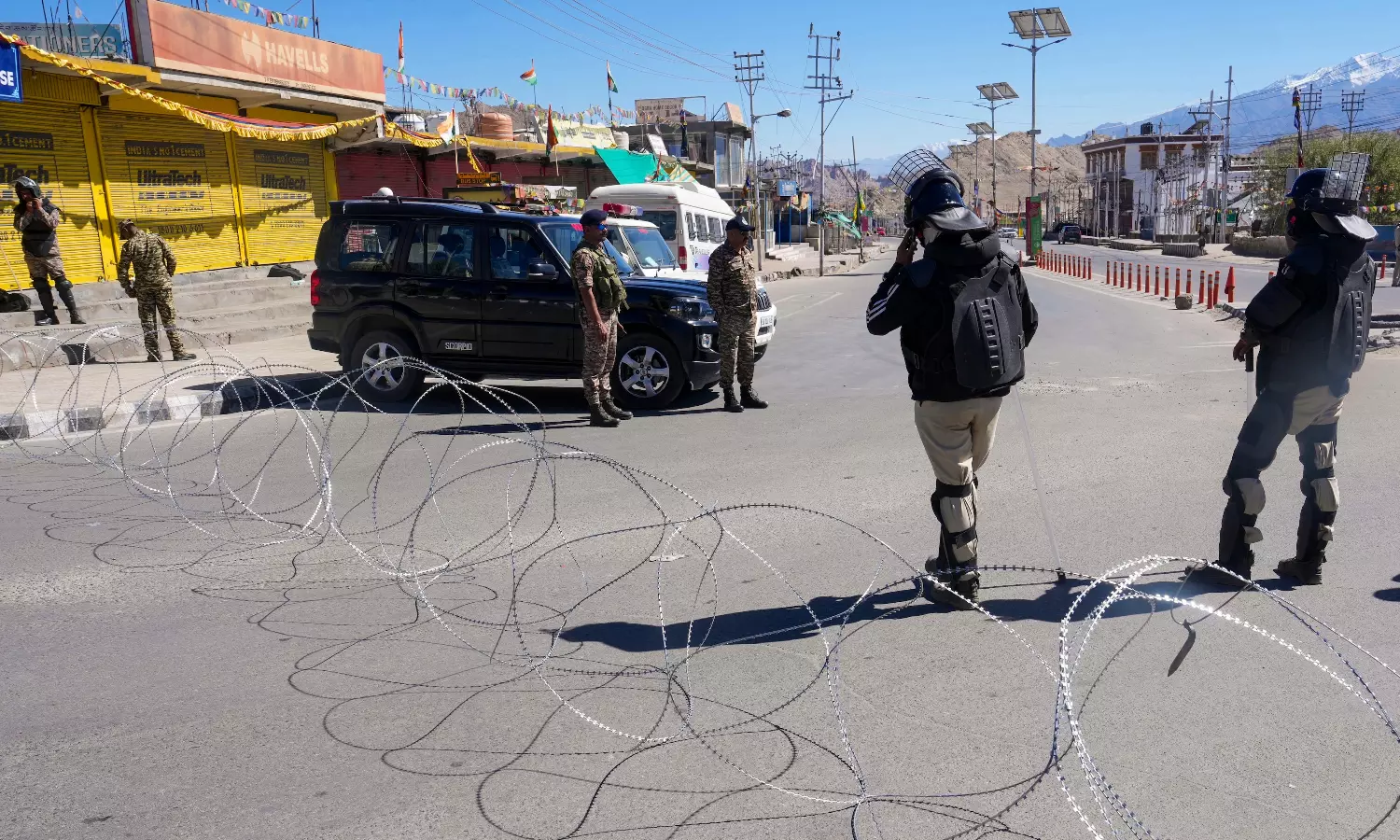 Police, CRPF, and ITBP maintain heavy patrolling and checkpoints in curfew-bound areas of Leh , with ITBP conducting a flag march on Sunday morning. Mobile internet services remain suspended, and prohibitory orders banning gatherings of five or more people are enforced in the Leh neighbourhood. Kargil, the other major town of Kargil, and surrounding regions continue to face stringent security measures under Section 163 of the Indian Civil Security Code 2023, prohibiting large gatherings.