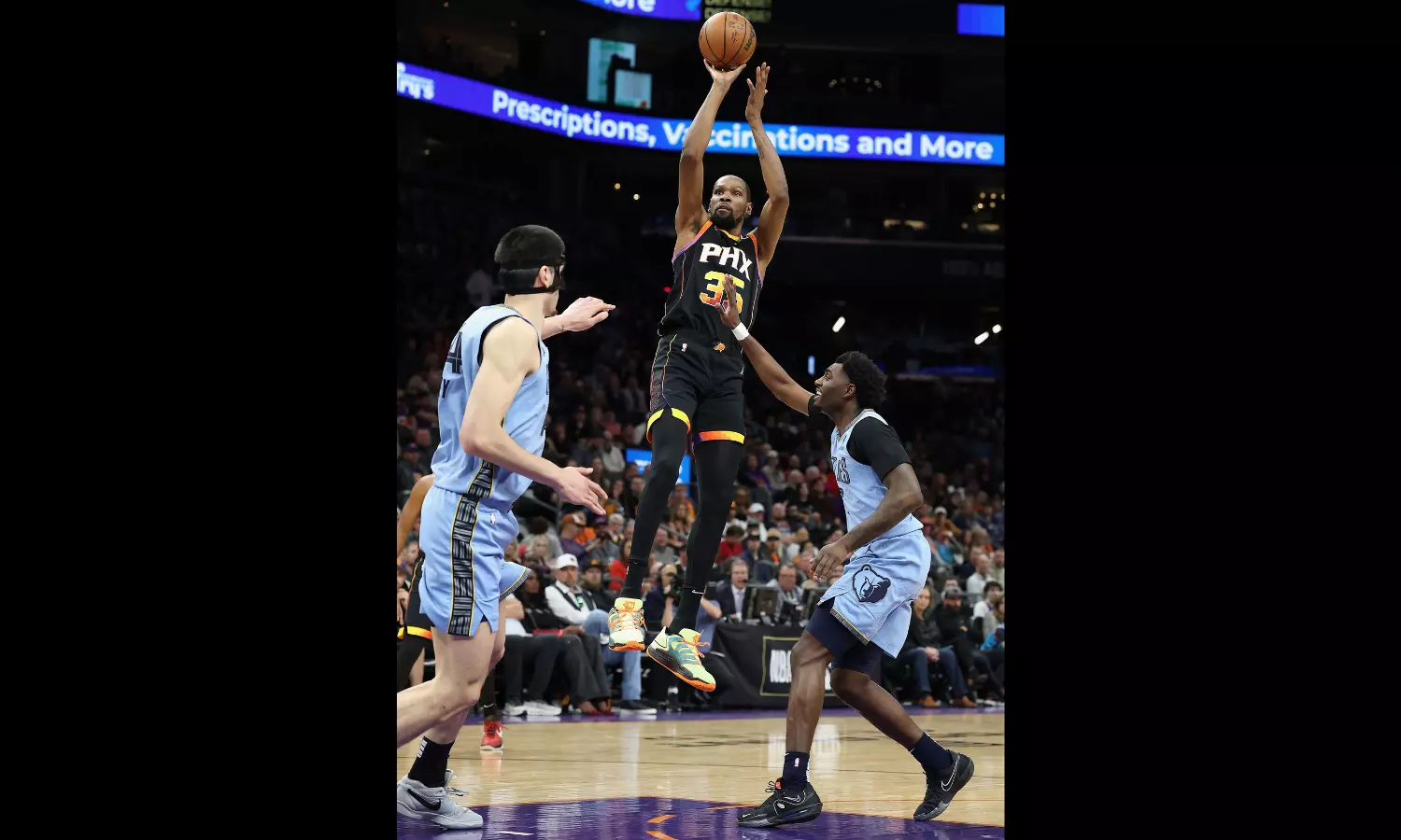 Phoenix: Kevin Durant became the eighth player in NBA history to score 30,000 points, hitting the mark against the Memphis Grizzlies on Tuesday night with a free throw late in the third quarter.