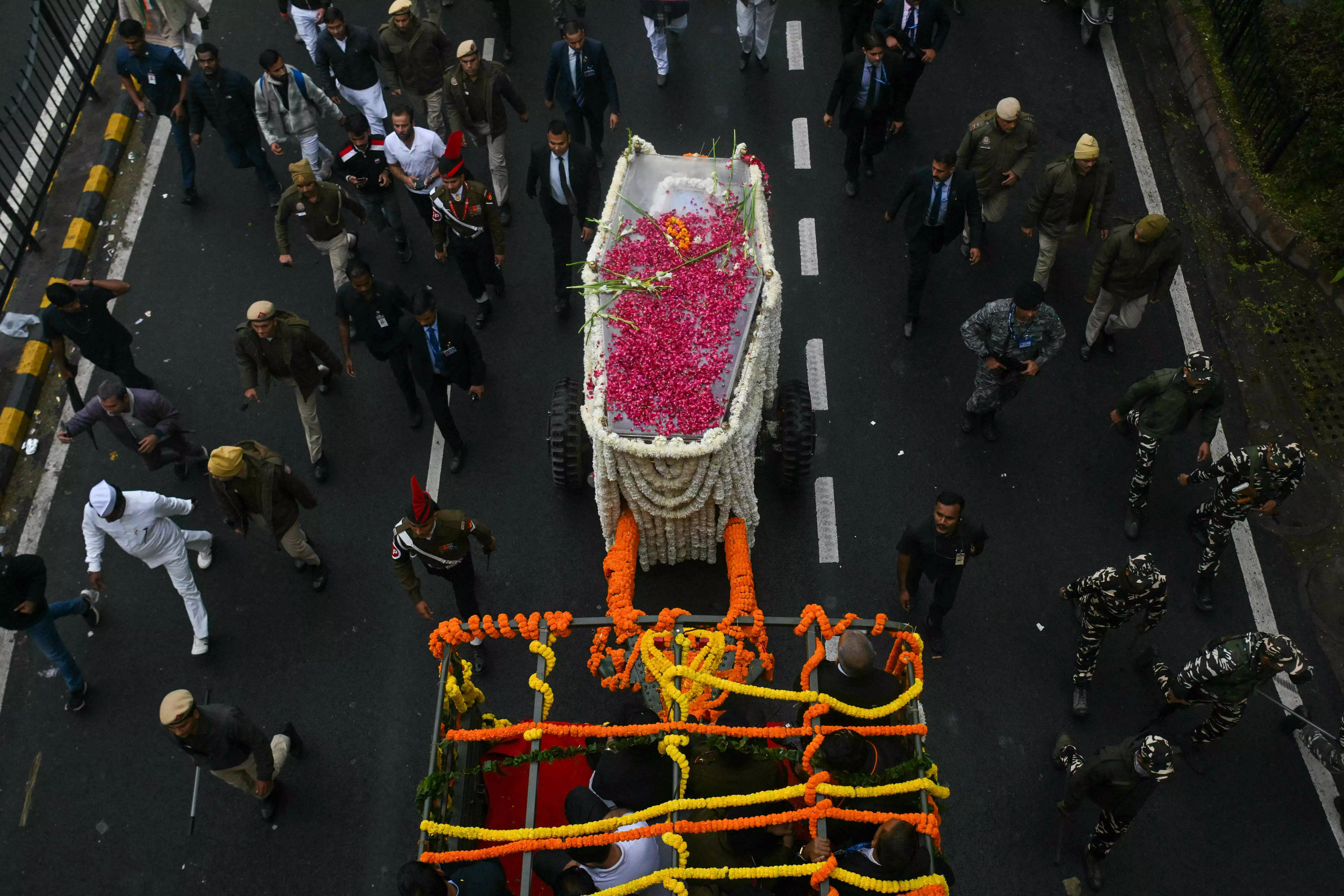 President Droupadi Murmu, Prime Minister Narendra Modi, Union Home Minister Amit Shah, and Defence Minister Rajnath Singh paid their last respects to the former PM by placing a wreath near his mortal remains earlier today.