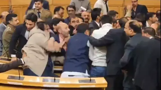 Srinagar:� A brawl broke out between BJP MLAs and marshals of the Jammu and Kashmir Assembly on Thursday after the speaker directed eviction of opposition members who had stormed the well during their protest over the special status resolution.At least three MLAs were marshalled out on the directions of Speaker Abdul Rahim Rather but the brawl ensued due to resistance put up by the opposition members