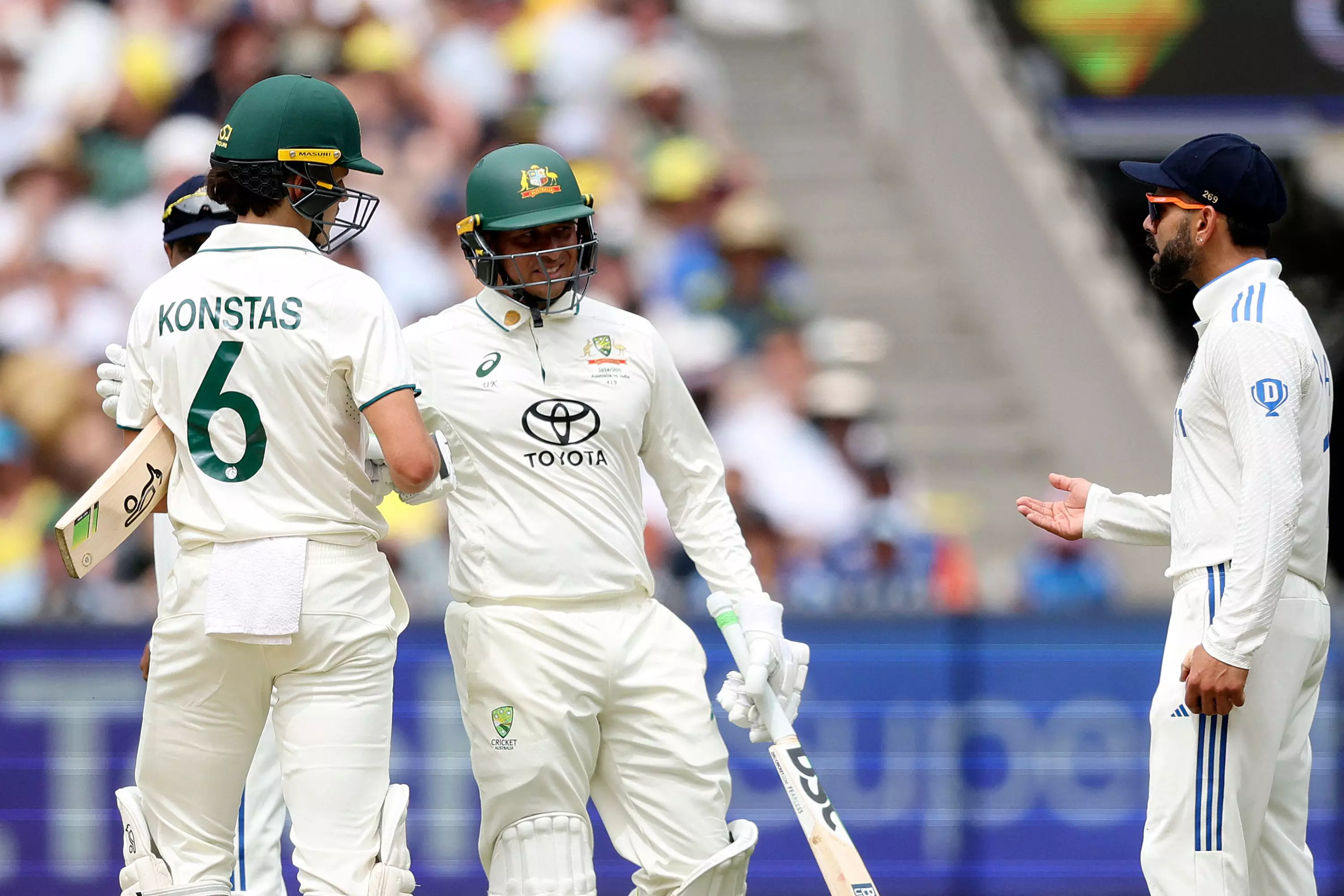 After the physical contact, both players quickly turned around to glance at each other and engage in a heated exchange of words before Konstas' teammate Usman Khawaja stepped in to separate them. The on-field umpires also had a word with the two and things cooled down rather quickly.