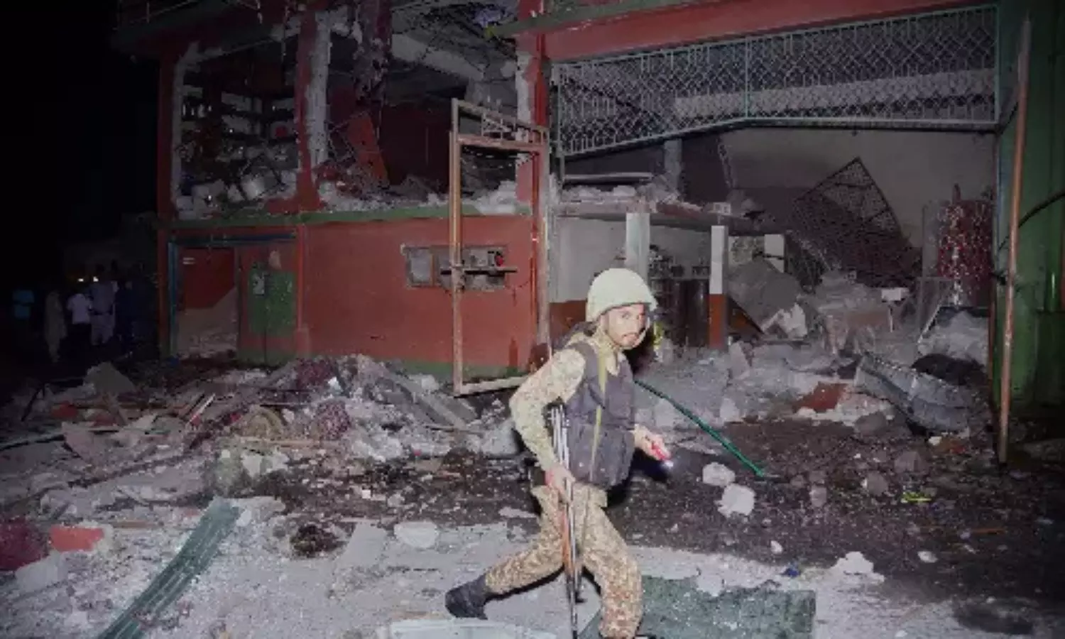 An army soldier examines a building damaged by a suspected Indian missile attack near Muzaffarabad, the capital of Pakistan controlled Kashmir, in Wednesday, May 7, 2025. (AP/PTI)